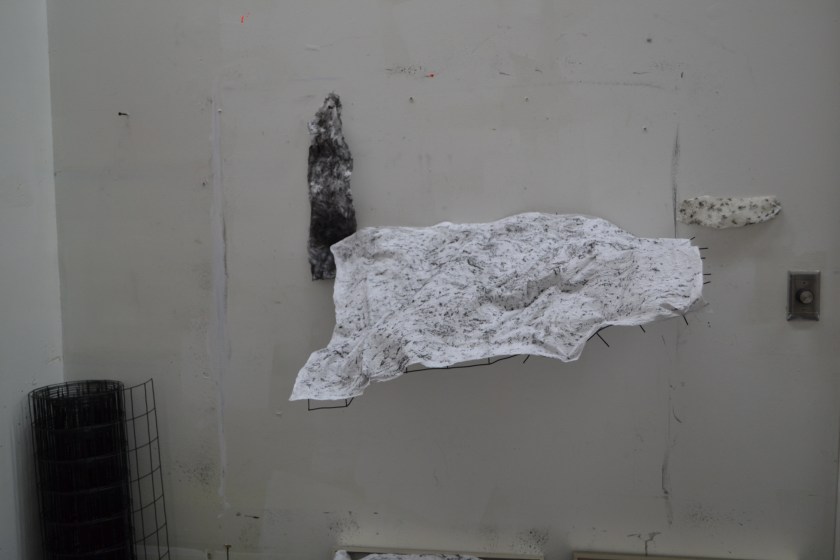 Erin is also doing rubbings with graphite, and experimenting with their shape. She has constructed wire sculptures to aid in the exploration of how shape and placement can alter the experience of the rubbings.