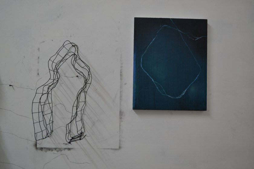 E: I feel like these are almost…personal. Drawing for me is a lot easier to make more intimate to me, probably because of scale. I can work on them anywhere and work on them for a really long time. And I think they help me think about what I want the other work to feel like. I started making these a long time before I started making the wire structures. I think I end up looking for material that feels like the line that I want or the movement I was getting at.